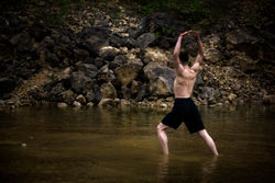 Nude self-portrait in action